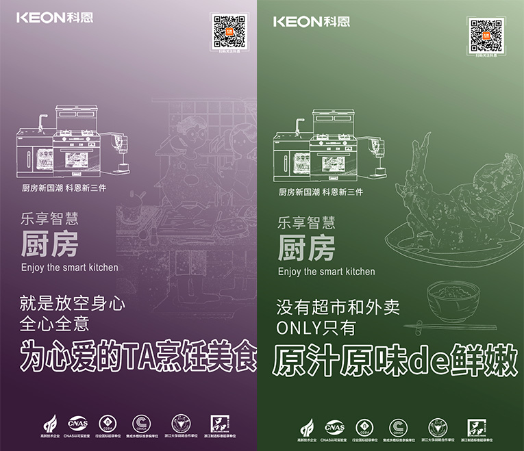 國潮正當(dāng)時(shí),隨著國貨的崛起,消費(fèi)者更加開始關(guān)注高端新國貨!科恩集成灶為千萬家庭打造樂享智慧廚房空間,創(chuàng)新設(shè)計(jì)、高端品質(zhì)、優(yōu)良服務(wù)、優(yōu)質(zhì)體驗(yàn)贏得了用戶的高度認(rèn)可。順應(yīng)“國潮”趨勢,提煉“新國貨新潮牌”理念,結(jié)合“廚房新國潮,科恩新三件”,以滿足現(xiàn)代年輕群體對國貨的審美與品質(zhì)認(rèn)知,以匠心科技實(shí)現(xiàn)現(xiàn)代廚房功能需求。