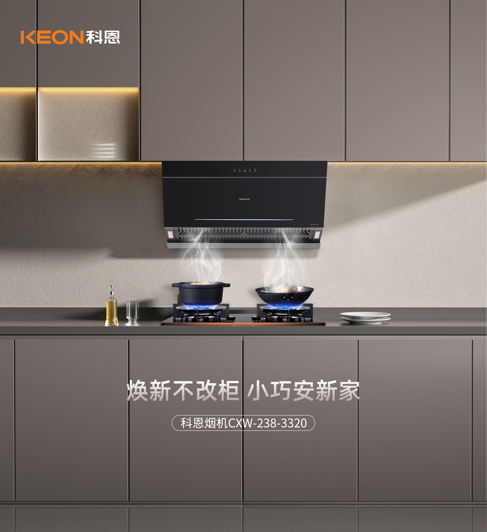 科恩3320煙機(jī)具有諸多顯著優(yōu)勢(shì)。首先,煥新不改柜,小巧的機(jī)身能夠輕松安于任意櫥柜之間,無(wú)需對(duì)櫥柜進(jìn)行大規(guī)模改造,為用戶節(jié)省了時(shí)間和成本。