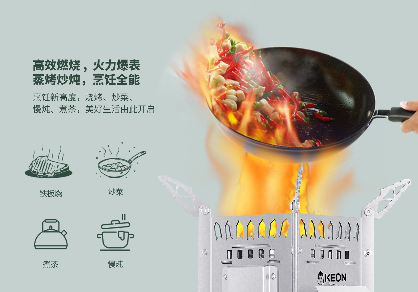一爐多用,烹飪?nèi)?。飛檐式爐架可調(diào)節(jié)防滑設計,多種鍋型均可使用,蒸烤炒燉一機搞定。高效燃燒,火力爆表,實現(xiàn)林間野餐0負擔,為Z時代打造戶外烹飪元宇宙!