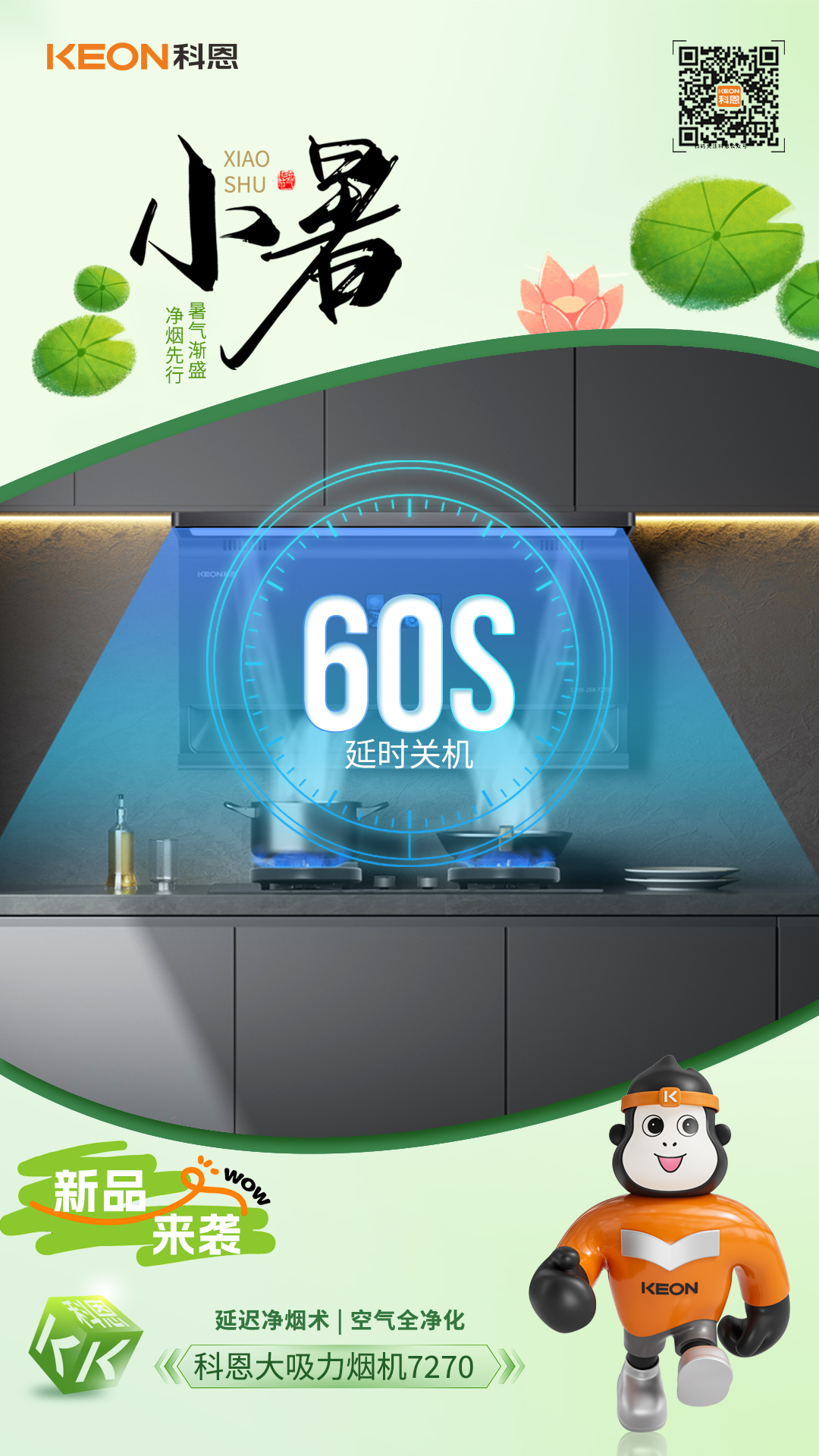 凈煙守護(hù),暑夏清涼。從凈煙到清潔,從性能到顏值,科恩7270煙機(jī)用硬核實(shí)力重塑烹飪體驗(yàn)。讓爆炒的煙火氣,化作生活的詩情畫意,讓每一次下廚,都成為清涼愜意的慢時(shí)光!
