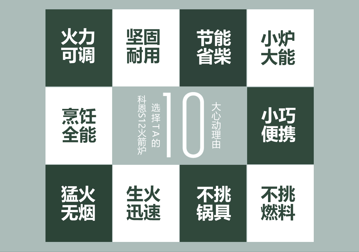 無煙猛火,暢享秋味。不銹鋼鏤空支撐腳,內(nèi)收折疊,穩(wěn)固承重,近郊野餐高效率,S12速烹超給力。重新定義野炊法則,攜科恩火箭爐S12,來一場秋日短途出行,輕便與實用全都擁有,一機打造移動米其林廚房。