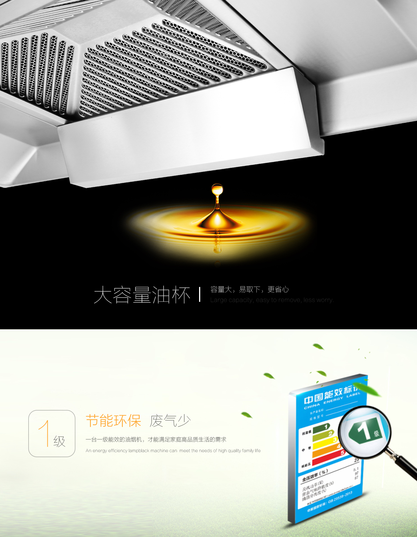全腔900MM攏煙區(qū),比普通煙腔更寬更深,有效鎖住油煙不外溢。