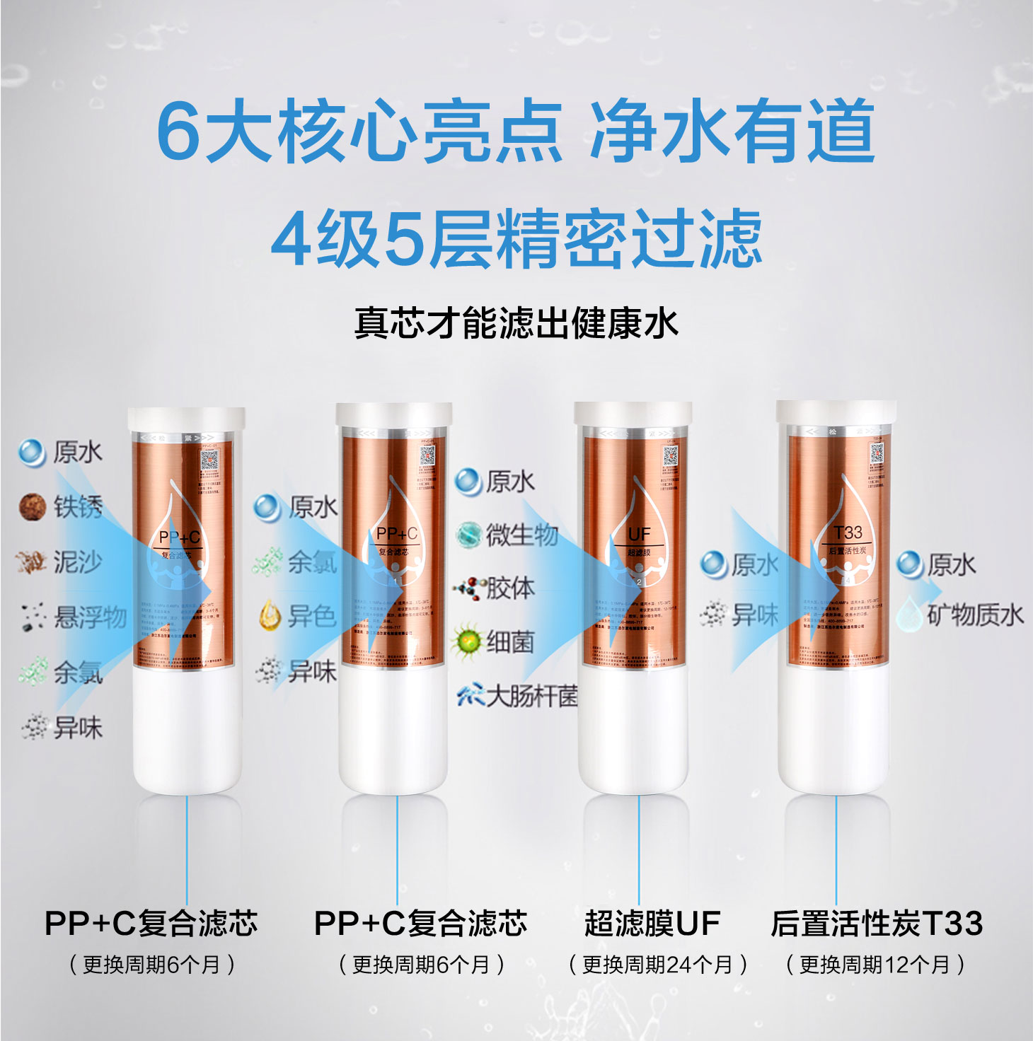 - 四重五級過濾,0.01微米超濾膜去除細菌和病毒。