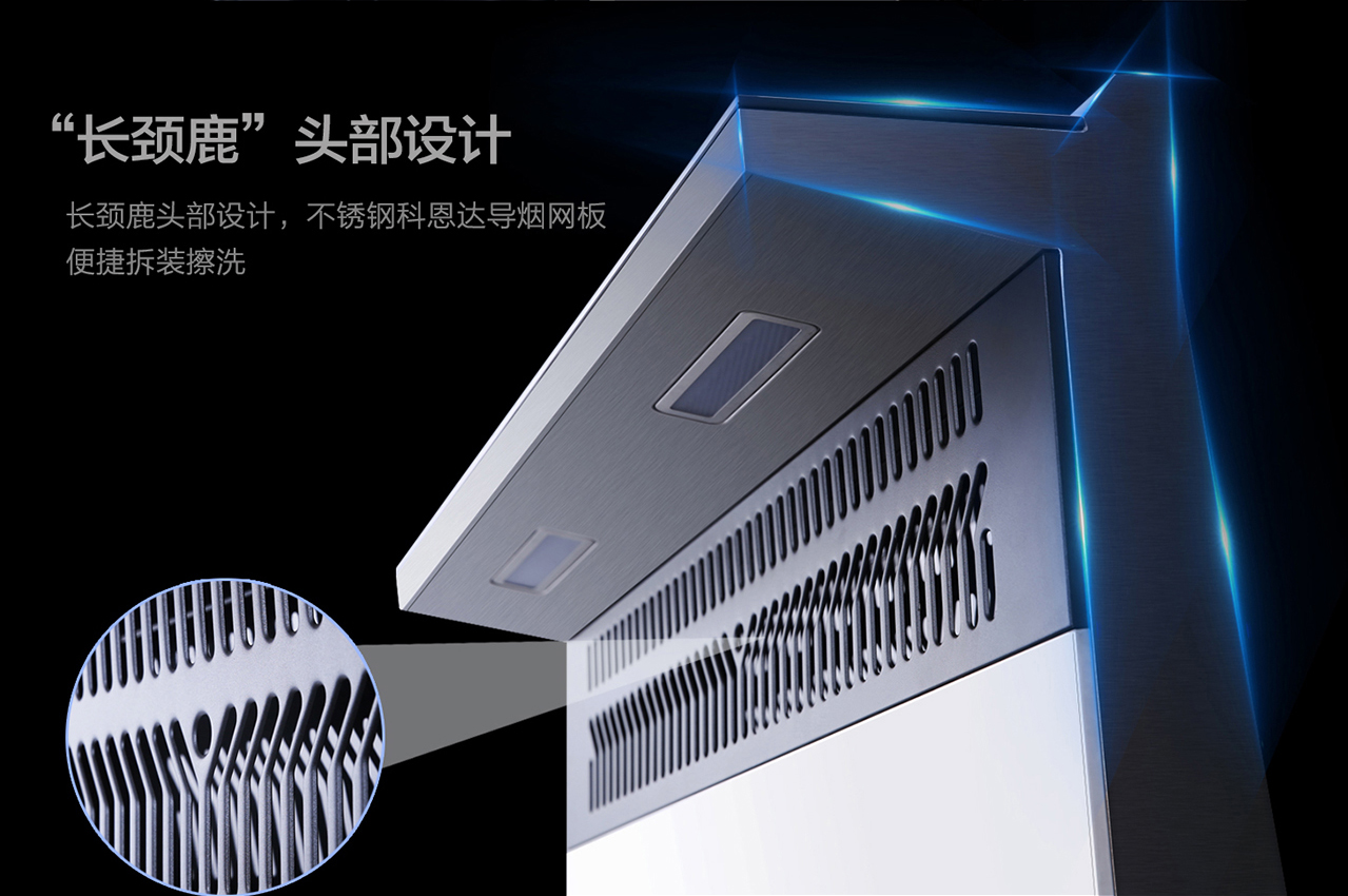 搭載可提拉式科恩達304不銹鋼導煙網(wǎng)板,拆卸方便。