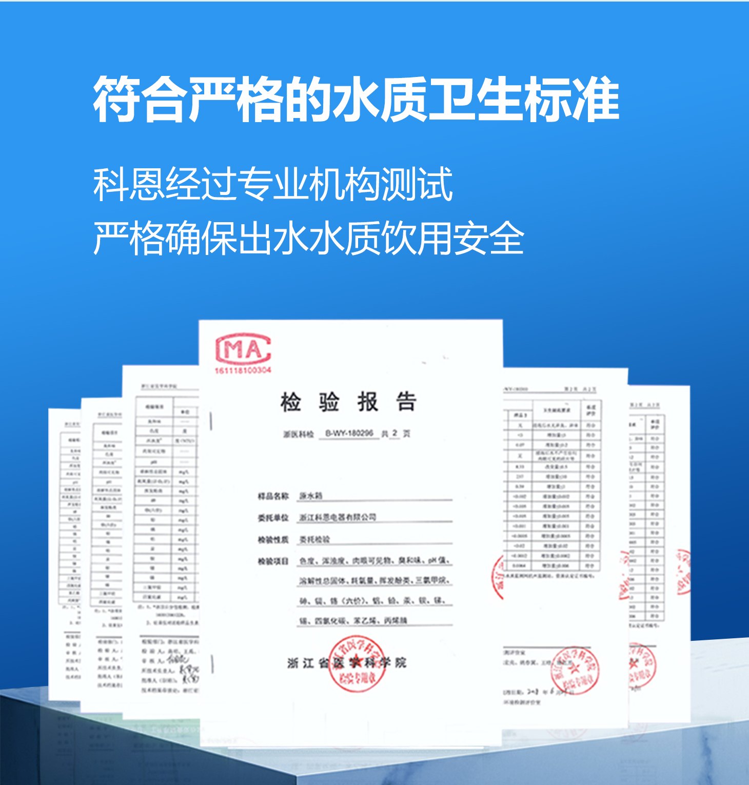 - 通過中國(guó)CMA106項(xiàng)水質(zhì)檢測(cè)(歐盟48項(xiàng)、美國(guó)69項(xiàng))嚴(yán)格標(biāo)準(zhǔn)