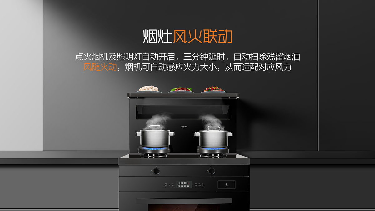 煙灶聯(lián)動(dòng),點(diǎn)火自動(dòng)同步開啟油煙機(jī)