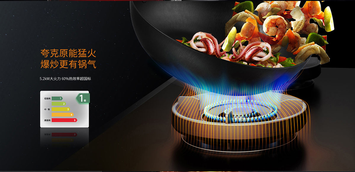 一級能效,5.2kW 大火力,全進風(fēng)設(shè)計,燃燒充分,爆炒給力