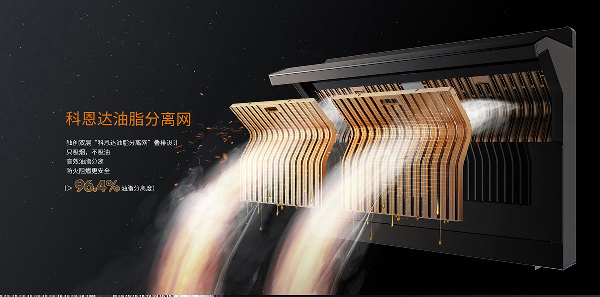 科恩達油脂分離網(wǎng),加厚太空壓鑄鋁,易潔易拆、防火阻燃