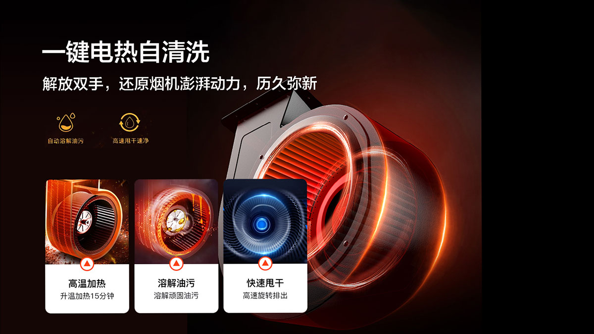 一鍵電熱自清洗,解放雙手,還原煙機(jī)澎湃動力,歷久彌新