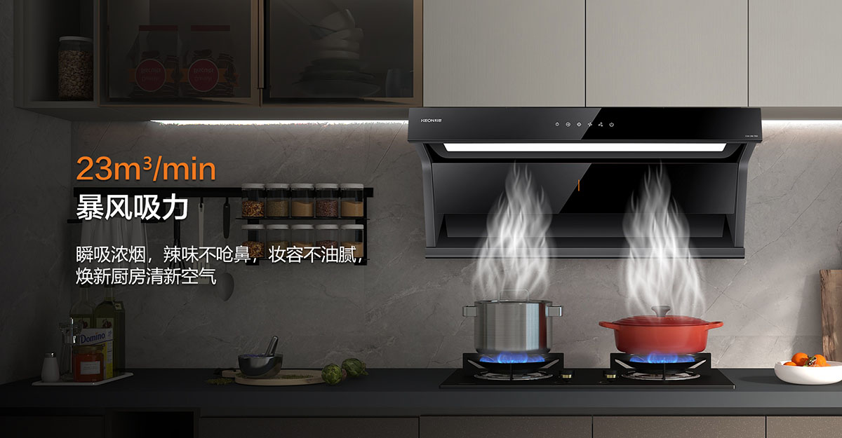 上下雙吸,下強吸,上快攏,強強聯(lián)合,油煙0逃逸