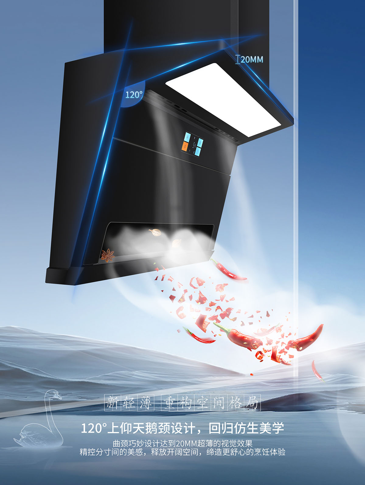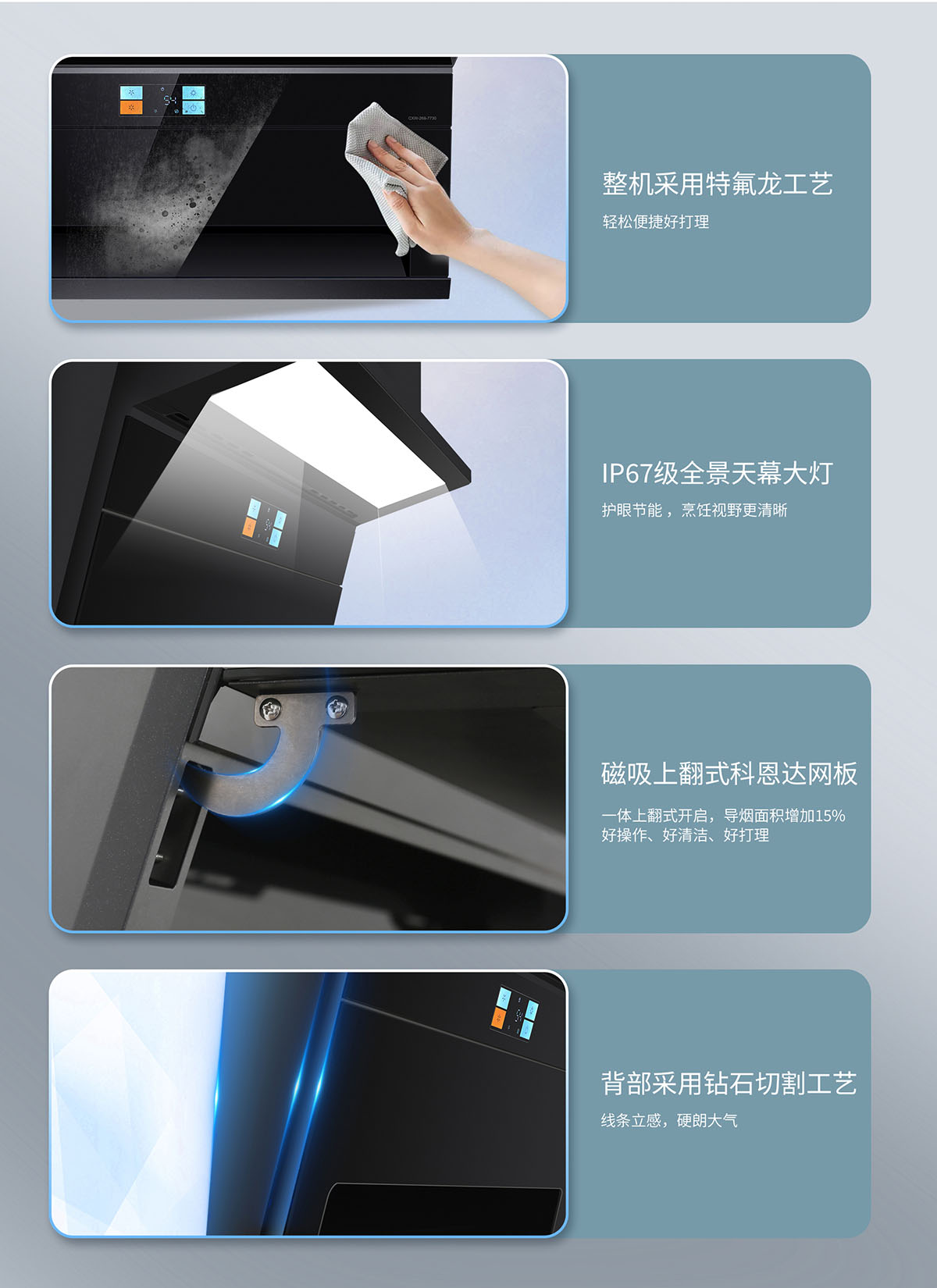 磁吸上翻式科恩達(dá)導(dǎo)煙板,減震防撞,清潔更便捷