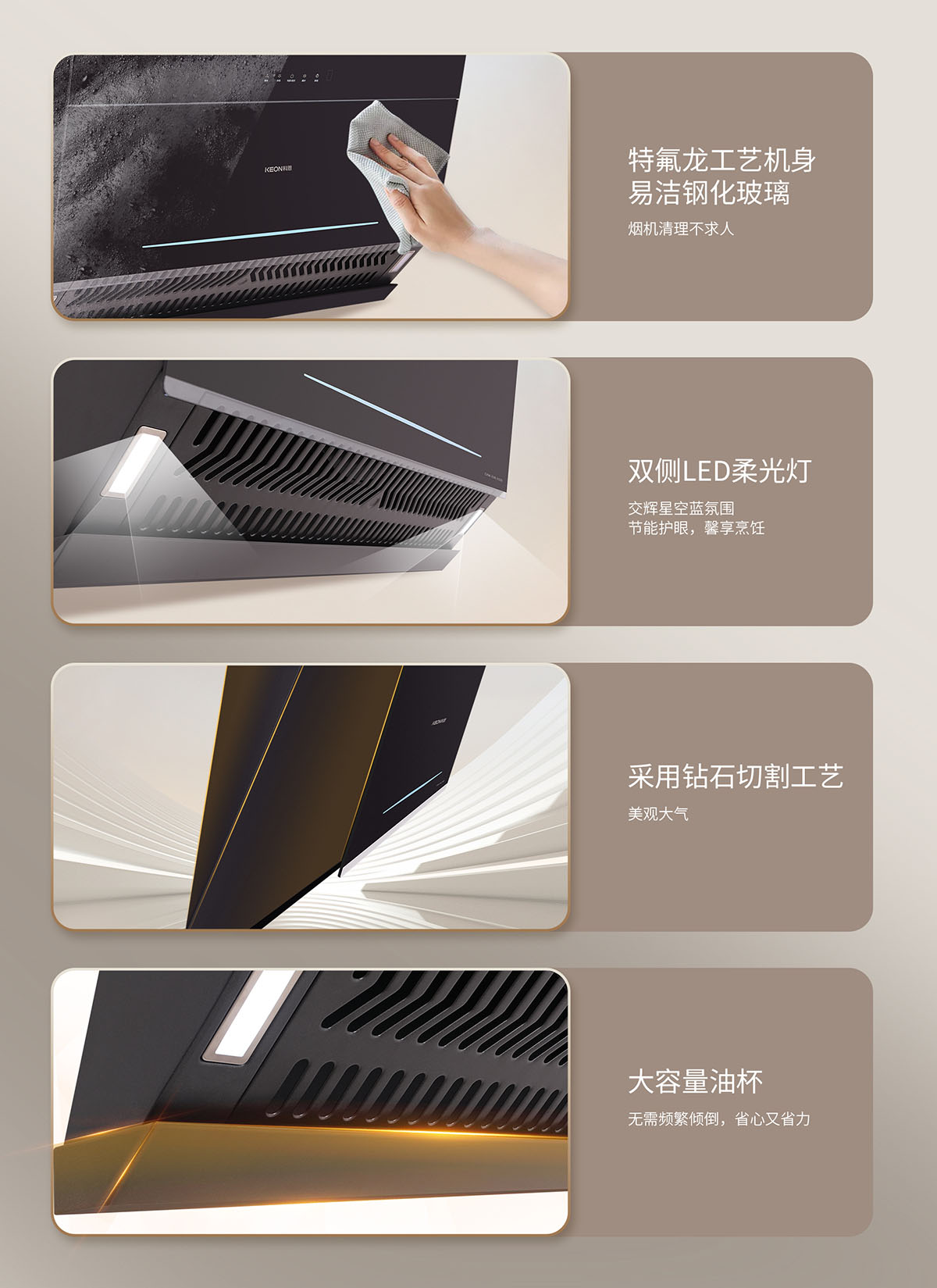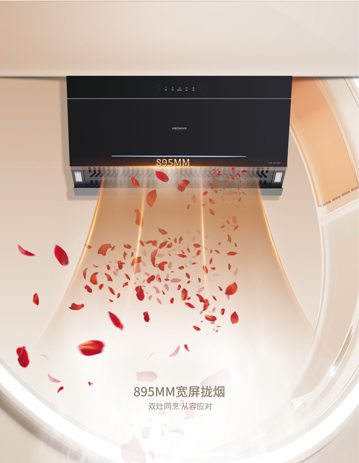 895MM寬屏攏煙,從容應(yīng)對雙灶同烹