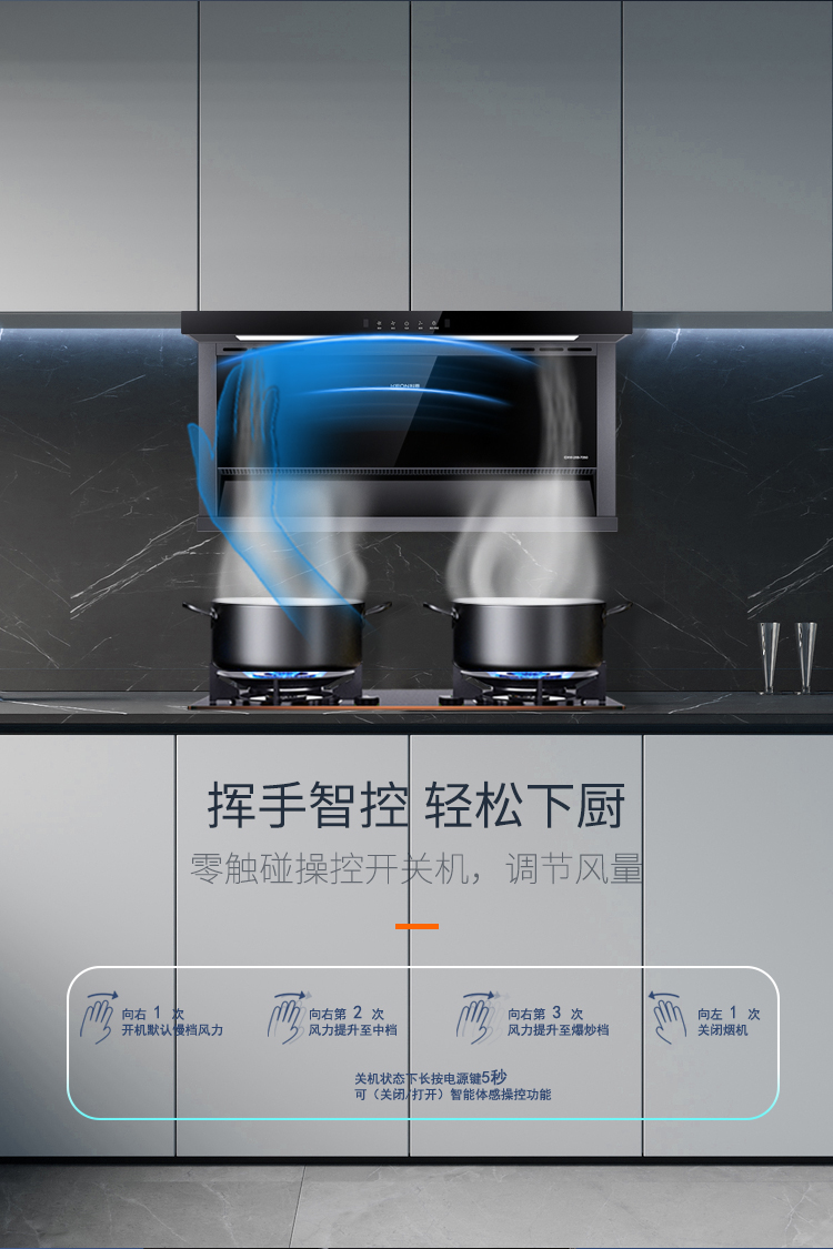 揮手智控,零觸碰操控開關機,調(diào)節(jié)風量。
